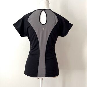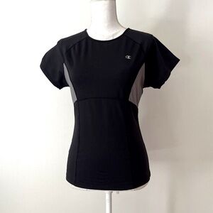 CHAMPION Athletic Top Size S Black Gray Keyhole Back Short Sleeve Workout Tee