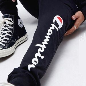 Check out some stylish comfort with the latest from Champion. The Script Fleece Jogger Sweatpants features an elastic stretch waistline, side pockets, a standard fit, a fleece, fabrication, and a left hip small logo embrodiery.