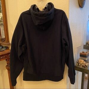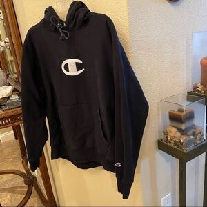 Pre-owned in great condition with no rips or stains. Champion black hoodie sweatshirt. Reverse weave made in Honduras. Can be unisex. Has a little fading. Nice thick and good quality material. Comes from smoke and pet free home.