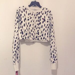 CHAMPION CROPPED SWEATSHIRT SIZE XS LONG SLEEVE BLACK &WHITE PRINT