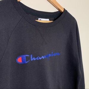 Authentic Champion crew sweatshirt; polyester cotton blend; classic script design