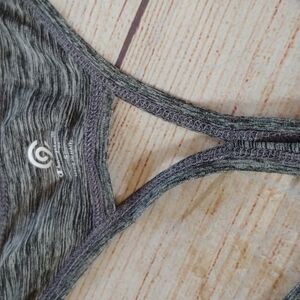 Beautiful heathered tank with racer back. Saying on front. Like new conditon! (F)