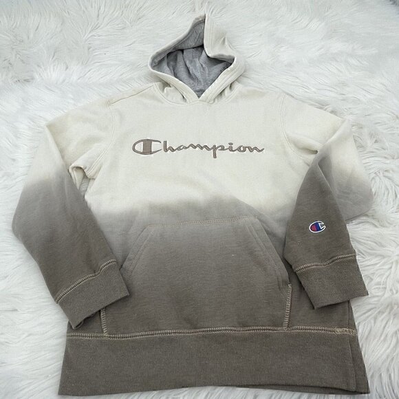 CHAMPION Girl's Medium Dip Dye Ombre Hoodie Beige Tan