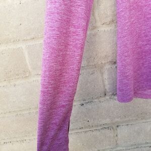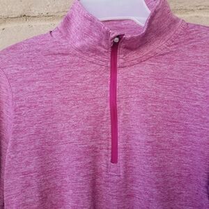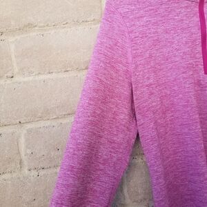 Very good condition. Champion half zip jacket pink, purple, lightweight, when zipped is high collar. Approximate measurements are pit to pit 18". Sleeves are approximately 28". Length is approximately 28".