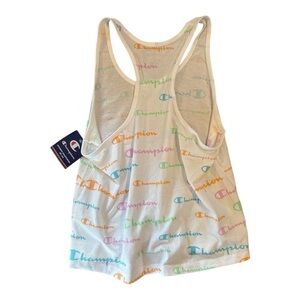 Stylish tank top with multicolor Champion logos. Comfortable and trendy design.