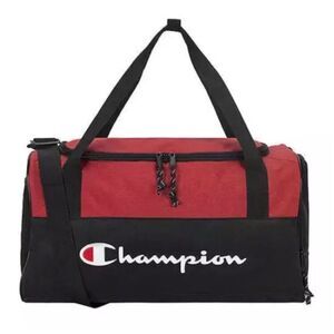 Champion "Prologue" Duffel bag with adjustable shoulder strap. This one's in red with black trim and the Champion logo boldly on front. It's 100% polyester and has a top zippered closure. Great storage with interior zippered pocket and side web pockets. Folds for easy storage. It's NWT and still in manufacturers bag.