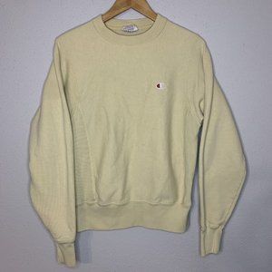 CHAMPION REVERSE WEAVE Pastel Yellow Sweatshirt Size XS Logo