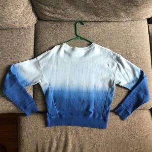 CHAMPION Reverse Weave Blue Dip Dye Script Ombre Crewneck Pullover Sweatshirt S
