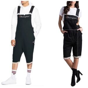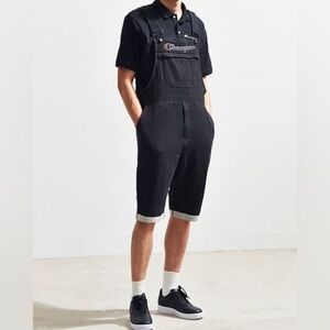 REVERSE WEAVE TERRY SHORT OVERALLS IN BLACK
