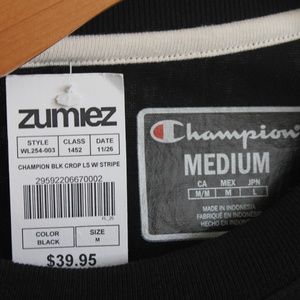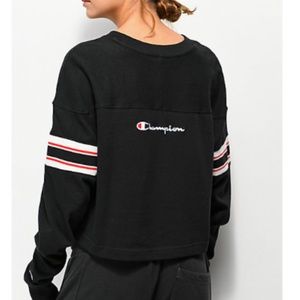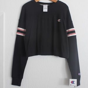 CHAMPION STRIPE BLACK CROP LONG SLEEVE T-SHIRT
