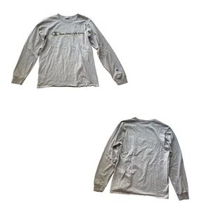VINTAGE CHAMPION Long Sleeve Crew Neck Pullover Shirt with Double Graphic Logo