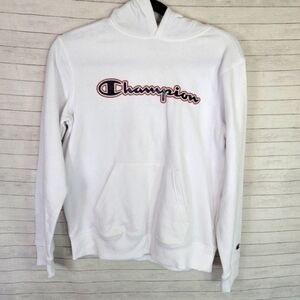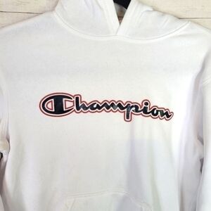 CHAMPION WHITE LOGO HOODIE, SZ LARGE