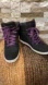 Like new condition wedge heel sneakers by Champion. Black textile material with lots of cushion around the ankles! Purple laces give these high top sneaks’ a pop of color against the black. Minimal wear throughout!