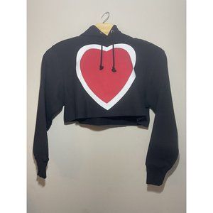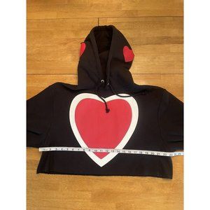 CHAMPION women’s Black Cropped Hooded Sweatshirt With Hearts Size Large