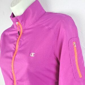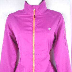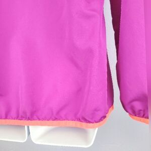 Magenta athletic lightweight jacket with orange trim, front pockets, and front zipper. Excellent condition.