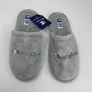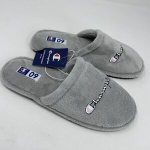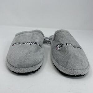 CHAMPION Womens Embroidered Logo Plush Motel Slippers NEW Slip-On Gray Sz 9