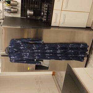 💕CHAN LUU💕 Eloise Maxi Dress ~ Black & Blue Abstract Floral Print XS