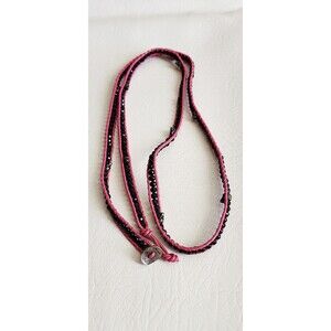 CHAN LUU NWT 5 WRAP PINK LEATHER ONYX NUGGET SKULL BRACELET 32"