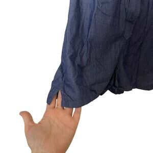 CHANCE Short Sleeve Button Up Romper in Dark Blue Size Small