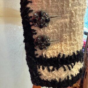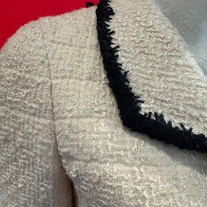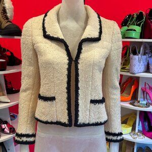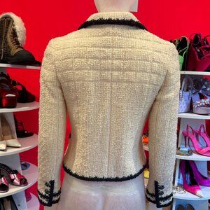 CHANEL 06A Ivory Black Contrast Trim Boucle Jacket Gripoix CC logo Buttons FR34