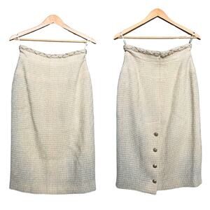 CHANEL 07A Skirt FR 40 | Cream Wool Tweed, Gold Chain Waist, Silk Lined, NWT