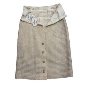 CHANEL 07A Skirt FR 40 | Cream Wool Tweed, Gold Chain Waist, Silk Lined, NWT