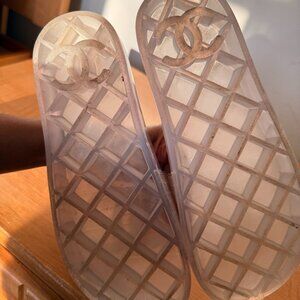 CHANEL 100% Authentic Transparent Jelly Pool Slides Sandals Flats Size 6/7