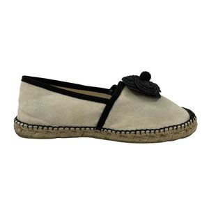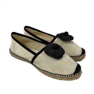 CHANEL - 10B Camellia Flower Espadrilles - Ivory, Black - 37- US 7