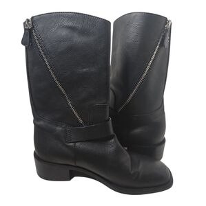 CHANEL - 14B CC Black Leather Buckle Moto Biker Boots - 37