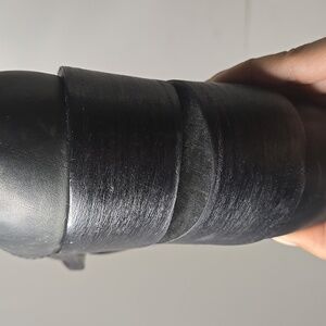 * They feature two leather stripes with buckles engraved "CHANEL", a diagonal zipper, a silver CC logo near the back opening, an asymmetrical shaft opening, square toe, and a heel.