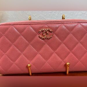 CHANEL 19 Zip Around Wallet in Blush Apricot Pink Matelasse Lambskin Authentic