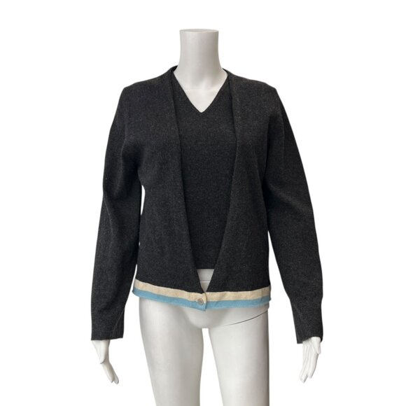 CHANEL 1999A Charcoal Gray Cashmere Wrap Cardigan Sweater Set sz FR 38/6-42/10