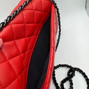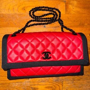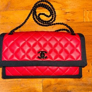 Red Chanel crossbody grosgrain beautiful bag. Comes with original card and certificate of authenticity as well. Great condition. Interior is pristine. One tiny spot on back of bag I have not tried to have it cleaned. Great bag!!!