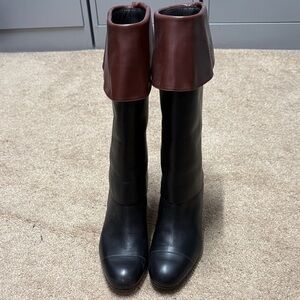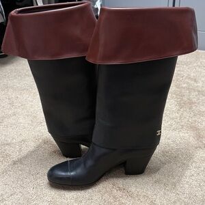 CHANEL 2020 Runway Two Tone Leather Musketeer Western Foldover Tall Boots Heels