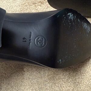 Calfskin leather pull on boots have a tonal cap toe with 2.25" leather heel. Musketeer style foldover detail in contrasting brown. Goldtone CC logo at tinner side of the right boot. Padded leather insole. Leather sole. Shaft: 11". Made in Italy. Designer color: Black, Brown. Pull on style (no zipper).