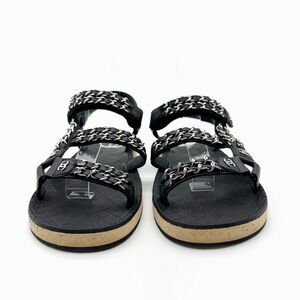 CHANEL 2022 Black Chain Interlocking CC Dad Sandals Size 40 Open Toe Slingback