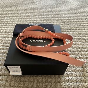 Brand new Chanel Pink bead and lambskin belt. 61”x0.5”. Comes with original box and dust bag. Never worn. From 2022 spring/summer collection.