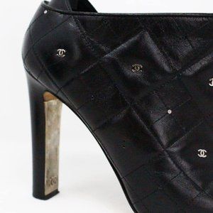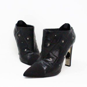 CHANEL #22040 Black Leather Quilted Pointy Toe Booties (US 9 EU 39)