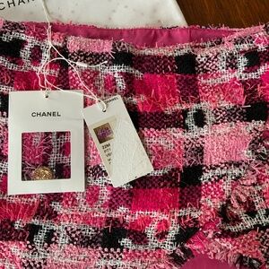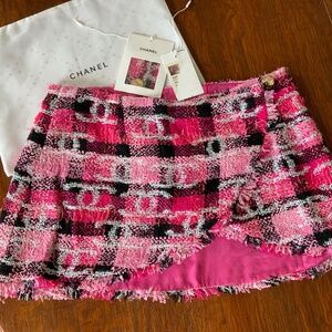CHANEL 22M CRUISE PINK BLACK CC TWEED MINI WRAP SKIRT 38