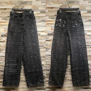 CHANEL 23B 2024 Runway Jeans 34 FR | Black Denim, White CC Logo, Baggy Oversized
