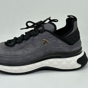 CHANEL 23K 2023 Suede CC Sport Lace Up Sneakers Kicks Shoes Trainers Gray