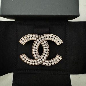 CHANEL 23S CLASSIC GOLD TONE LARGE BIG CC LOGO CRYSTALS CRYSTAL BROOCH PIN