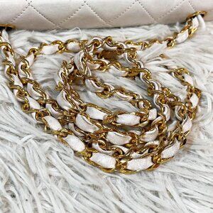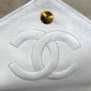 This is an authentic CHANEL Vintage Matelasse Lambskin Leather Quilted Shoulder Bag Crossbody Chain in White. This shoulder purse is crafted of luxurious lambkin leather. The timeless envelope flap bag features the iconic interlocking CC logo in gold at the front.