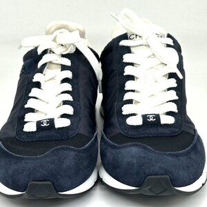 CHANEL 24P Fabric Suede Sport Runner Lace Up Sneakers Kicks Shoes Trainers