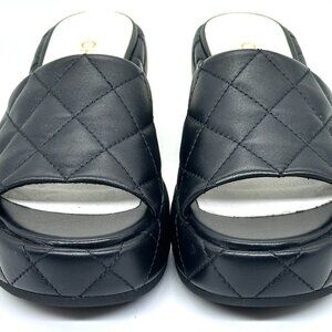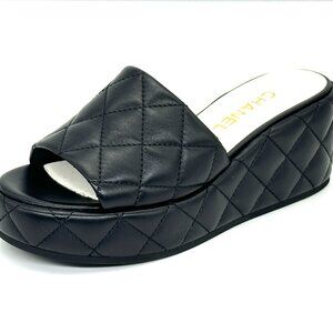 CHANEL 24P Quilted Leather Open Toe Wedge Heel Mule Slide Platform Sandal