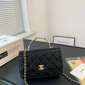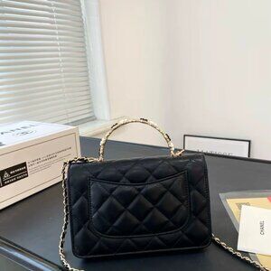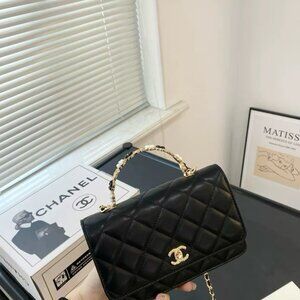 CHANEL 24P gold buckle diamond pattern leather chain shoulder crossbody handbag