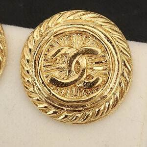 CHANEL 24k Gold Plated CC Logo Rope Round Clip On Earrings