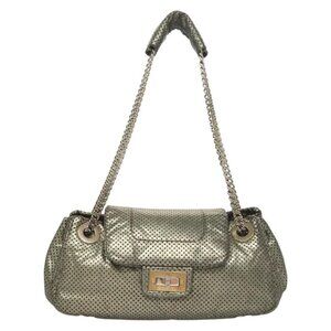 CHANEL 2.55 Chain Shoulder Bag Leather Silver CC Auth 133142