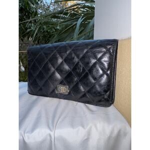 🍒 CHANEL 2.55 Line Matelasse Long Wallet Black Leather Quilted France w/Dustbag
