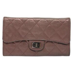 CHANEL 2.55 Matelasse Long Wallet Leather Pink Silver CC Auth 137893
